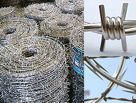We provide barded wire in different styles, such as single-strand twisted, double-strand twisted (modern barbed wire), traditional style, and various razor types. The product can be galvanized or PVC/PE coated for corrosion protection purpose. For razor types, typically the core wire is galvanized and the tape is stainless to prevent the points from rusting to bluntness.